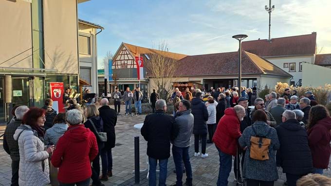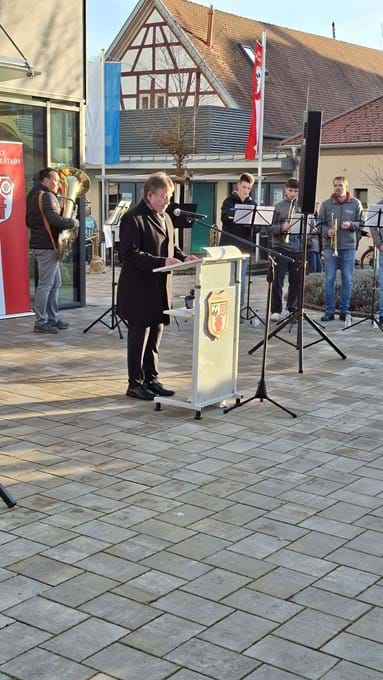 Der Bürgermeister bedankte sich bei allen Beteiligten, insbesondere bei Ortsplaner Tropp für die gelungene Rahmenplanung, bei dem Büro Trenner für die vorbildliche Planung und Überwachung der Bauausführung sowie bei den beteiligten Firmen. Insbesondere mit der Firma Lithon konnten mit dem Pflastersystem neue ökologisch vorteilhafte Wege beschritten werden. Er dankte dieser Firma für die Spende von zwei Sitzblöcken als Übergabegeschenk. Ortsplaner Rainer Tropp trug ein Gedicht und Planer Christoph Trenner interessante Details über den Bauablauf vor. Die beiden Pfarrer Markus Lang und Jakob Mehlig verbanden die Glückwünsche zum gelungenen Werk mit ihren Neujahrsgrüßen.