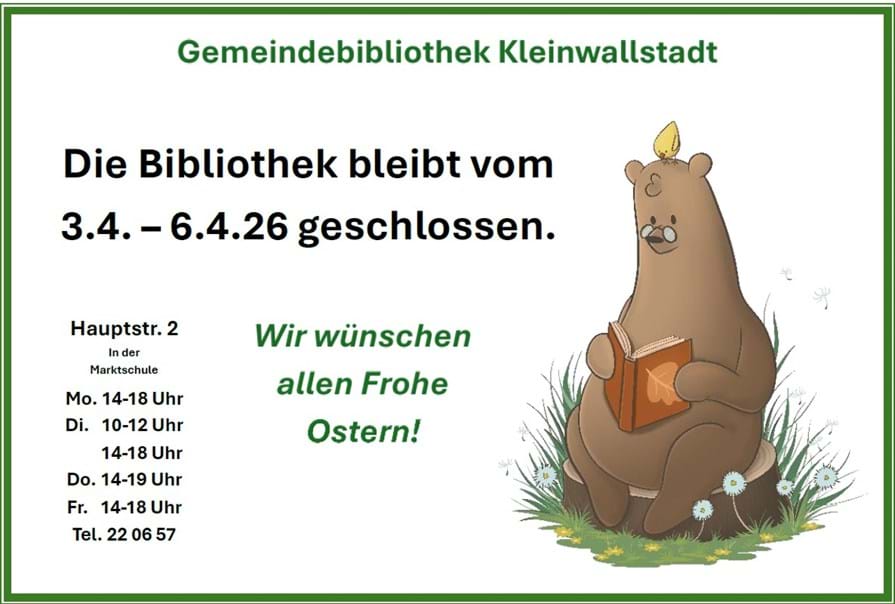 06022 2206-57 | Bibliothek | bibliothek@kleinwallstadt.de |