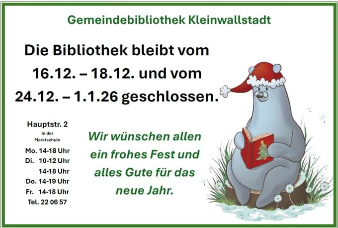 Die Bibliothek bleibt vom 16.12-18.12 wegen einer EDV-Umstellung geschlossen!