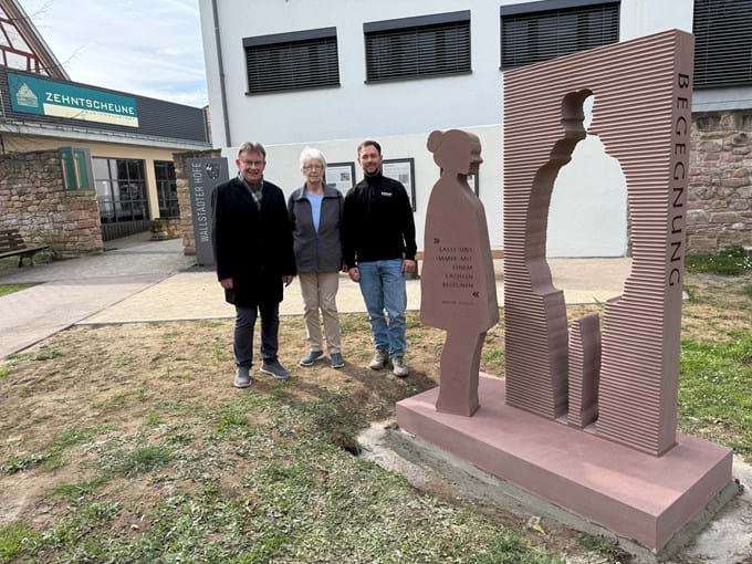 Als optimalen Standort haben wir eine Fläche im alten Friedhof westlich der Marktschule vor den Ortstafeln an der Ortsmauer ausgesucht. Frau Frieske beauftragte den Steinmetzbetrieb Vorherr mit der Erstellung dieses Kunstwerks aus Sandstein, der aus Umpfenbach stammt. Das gewählte Thema „Begegnungen“ passt hervorragend zu den angrenzenden Gebäuden Markschule, Zehntscheune und Rathaus, wo sich regelmäßig viele Menschen treffen. Das gelungene Werk wurde in der vergangenen Woche aufgestellt und ist mit dem Spruch von Mutter Teresa versehen „Lasst uns immer mit einem Lächeln begegnen“.